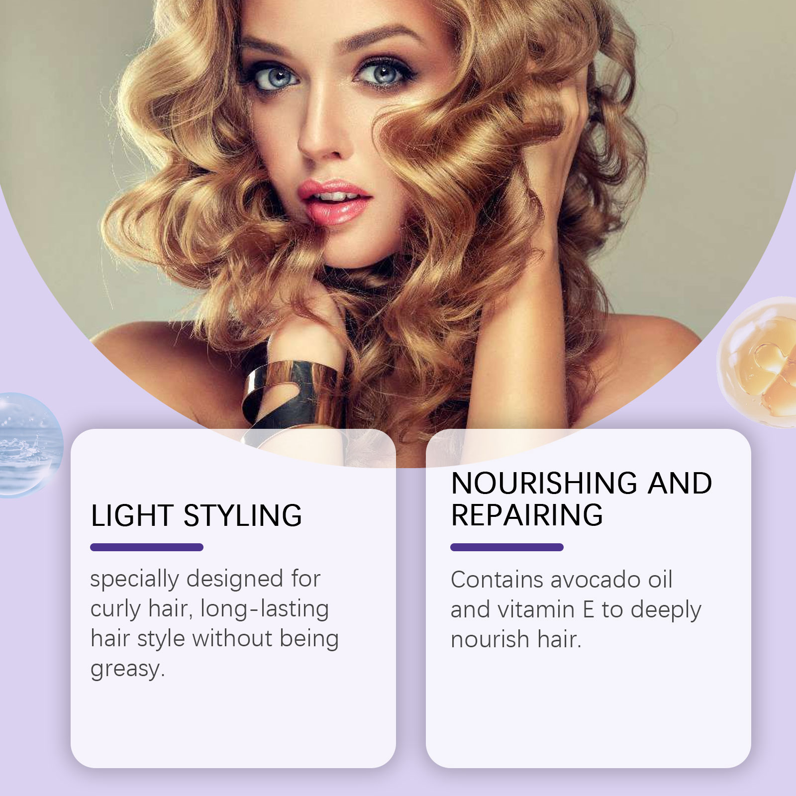 Our curly Hair Volumizing mousse contains beeswax, vitamin E, and avocado oil. It can improve the shine of hair and make curly hair more attractive. Suitable for everyday use, keep curly hair beautiful and lasting. The user feedback is good, and the use effect is remarkable. Mild ingredients for healthy hair. The way to use it is simple: clean your hair and keep it frizzy, gently wet the right amount with a comb, and wait for the mousse to set. Rub evenly with the palm of your hand and apply evenly from the roots to the ends of your hair. And can nourish a light look, designed for curly hair, lasting non-greasy hairstyle. Contains avocado oil and vitamin E to deeply nourish hair.